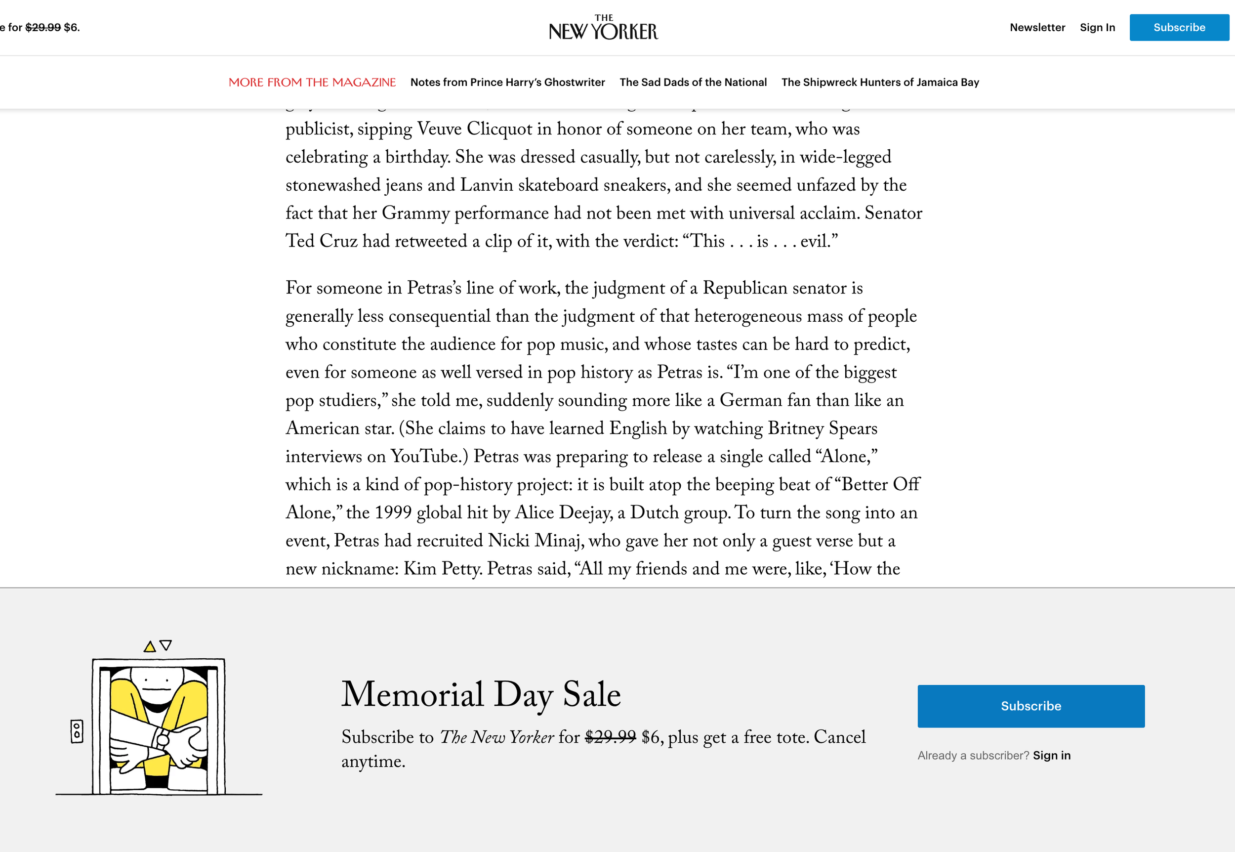 The New Yorker allows readers to get through a portion of an article before introducing the gate