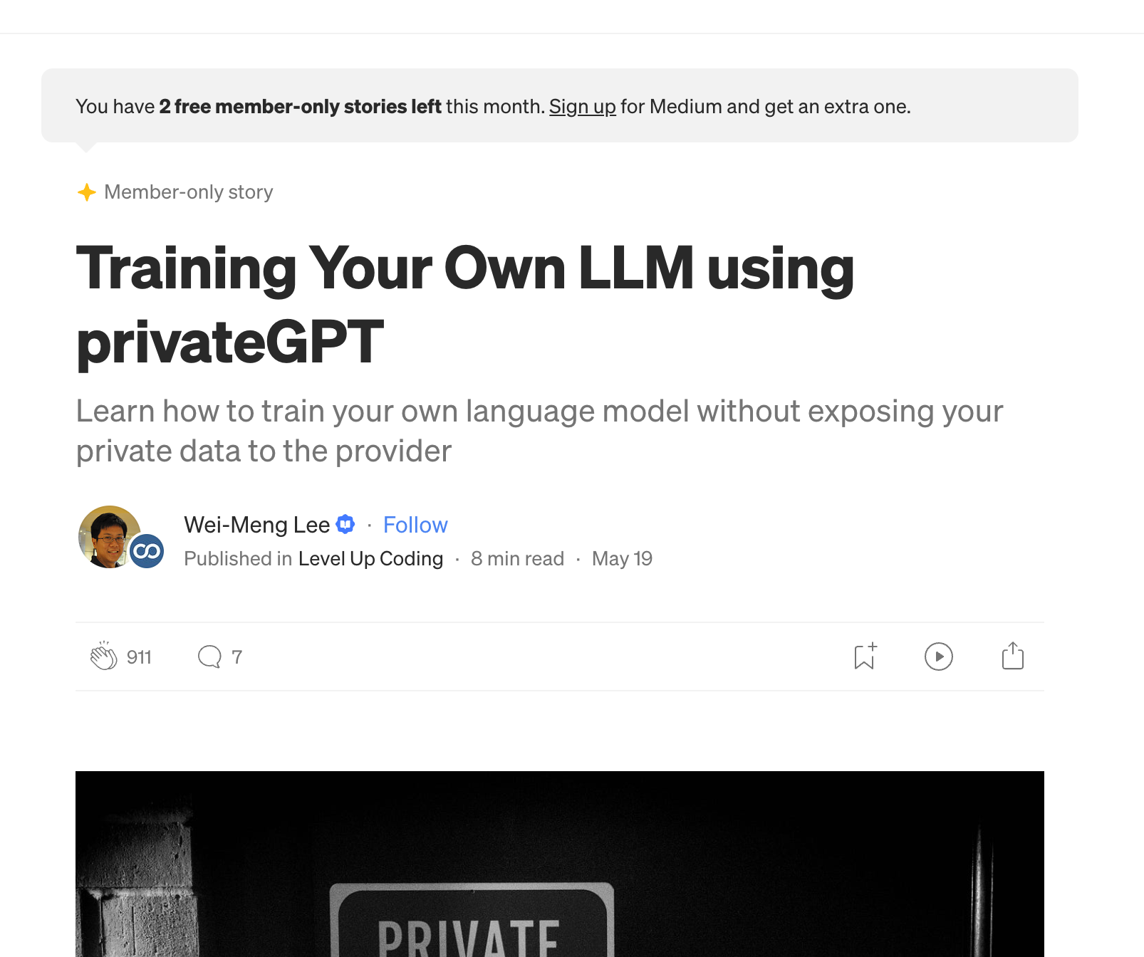 Medium does a good job informing readers of their meter system without being too intrusive